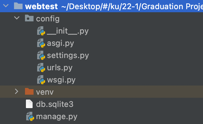 ↓ 여기까지 하면 요렇게 config 폴더 / manage.py 가 생긴다