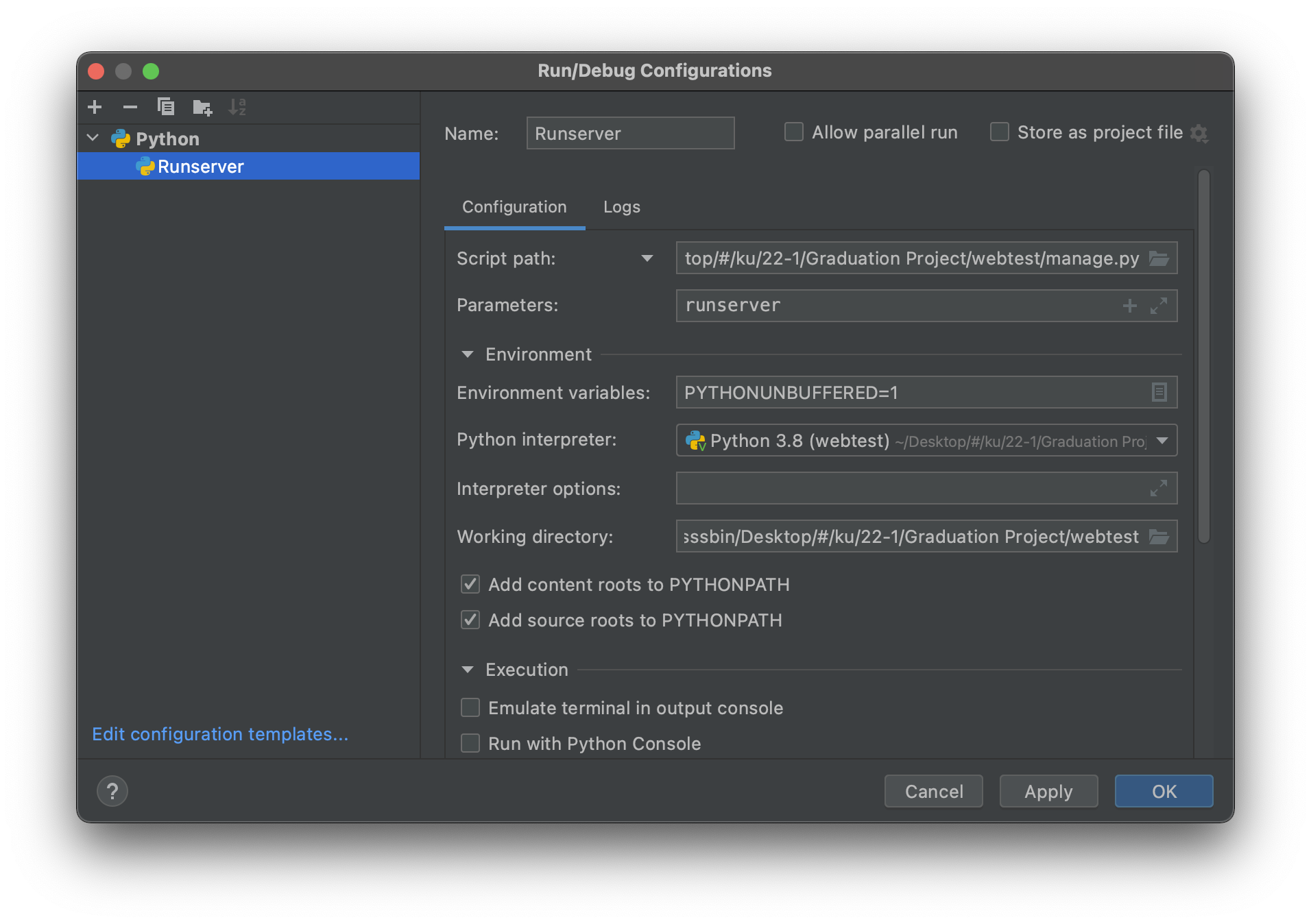 일단 나는 먼저 파이참을 이용해 프로젝트를 하나 생성해주고 시작했다