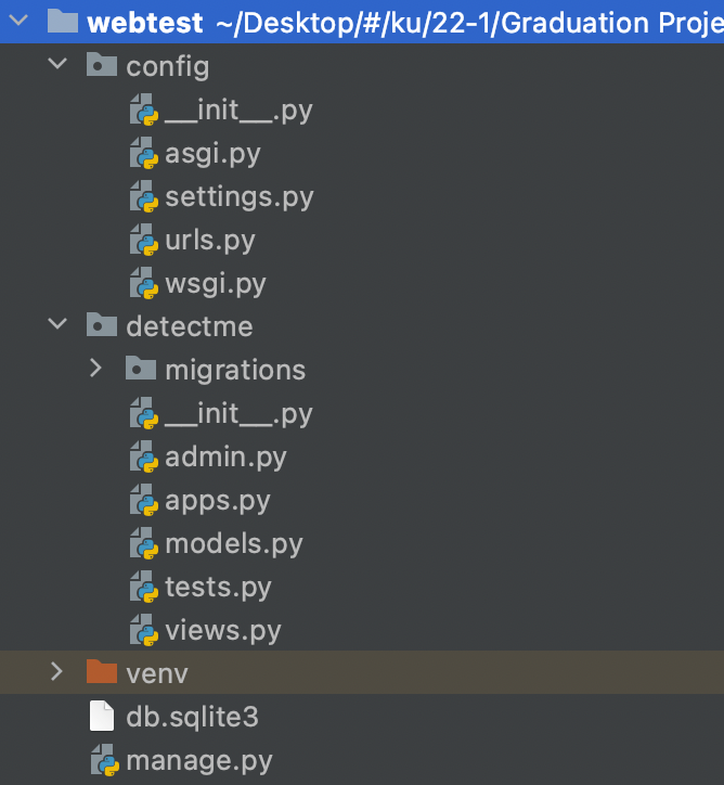 python manage.py startapp detectme # 만들 앱 -> detectme