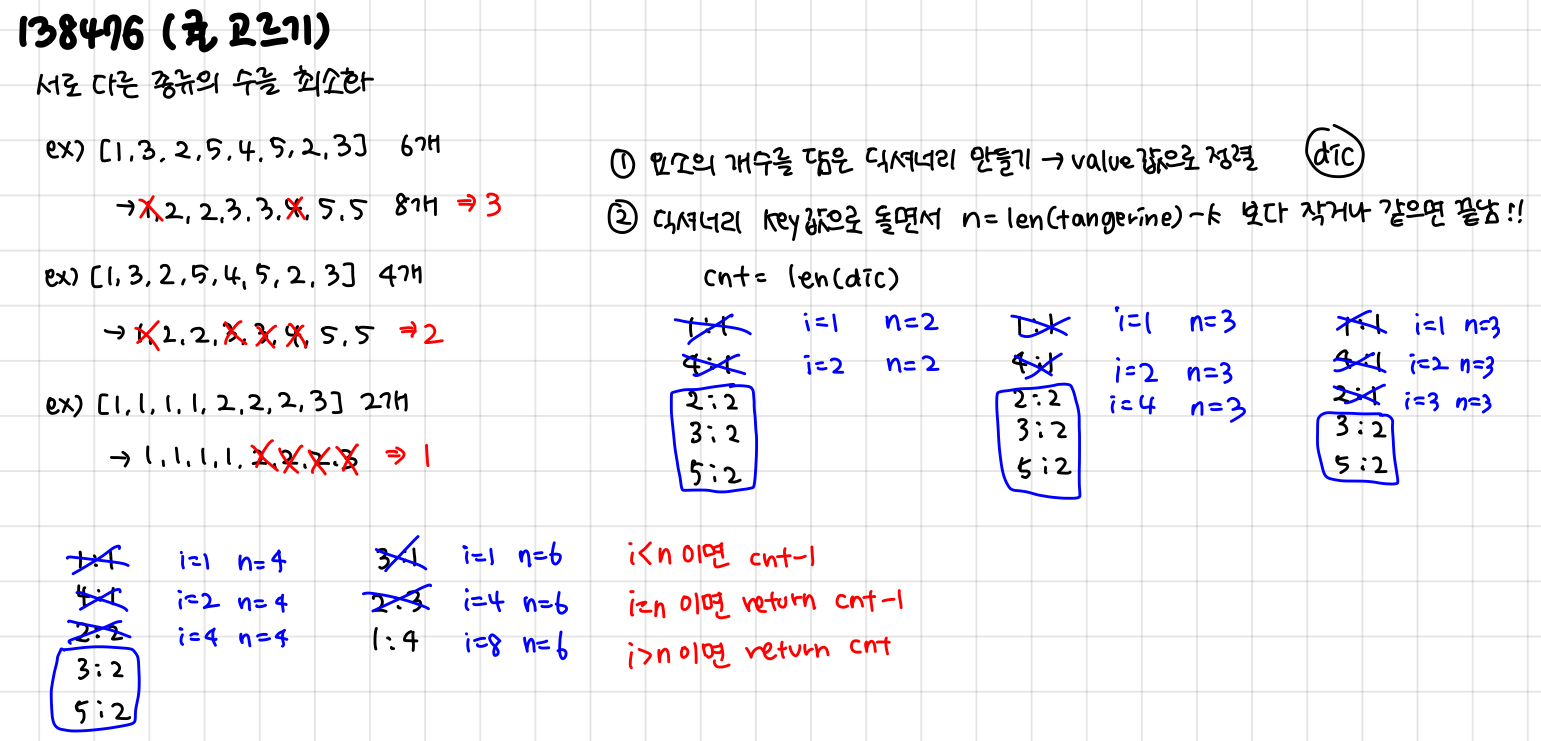 # ํ๋ก๊ทธ๋๋จธ์ค 138476: ๊ทค ๊ณ ๋ฅด๊ธฐ