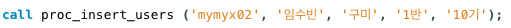 create procedure 이름 (매개변수)